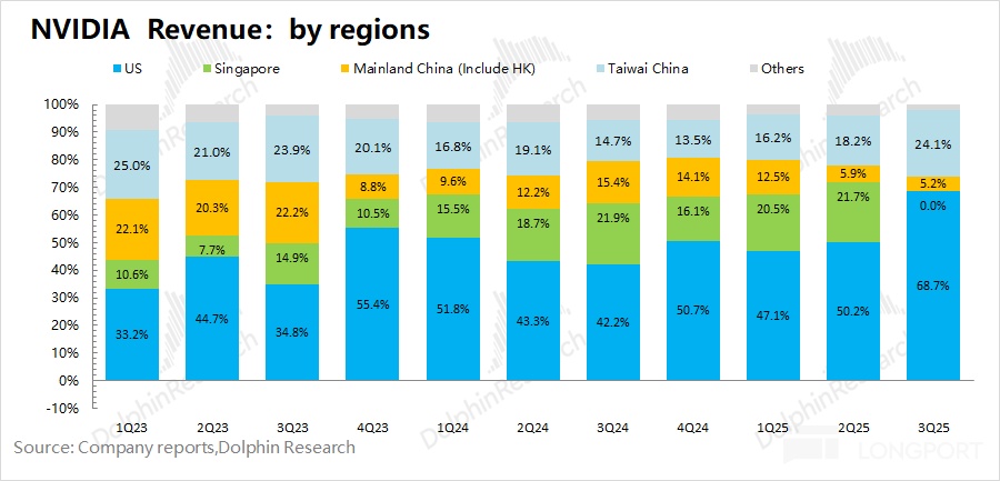 a)中国市场基本已经丢失:原本英伟达可以在中国市场销售 H20 芯片,而在 H20 被禁之后,中国市场在英伟达最近报表中的份额已经滑落至 5% 左右(原本中国市场能给贡献公司 2 成左右的收入)。