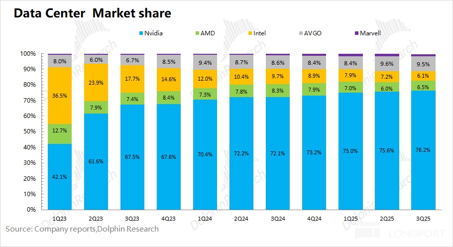 而完成这个使命的关键任务之一,就是把英伟达的技术扩散的全球市场。比如特朗普带着 GPU 商家们去中东等地区签单。也因此,而英伟达在中国的市场份额从原本的 95% 瞬间归零,让黄仁勋说出了美国要输掉 AI 战争的丧气话。