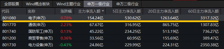 资金面上,电子板块全天获主力资金净流入超154亿元,拉长时间来看,近5日、近20日、近60日分别吸金逾530亿元、1263亿元、3317亿元,板块吸金额持续高居31个申万一级行业首位!电子ETF成份股胜宏科技获主力资金净流入超31亿元,登顶A股吸金榜