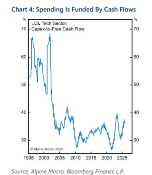Henry Wu表示,这不是风险,而是“科技在整体投资中占比上升的结构性现象”。他指出,九十年代的科技投资热潮规模更大,而且这种支出不会永远持续。