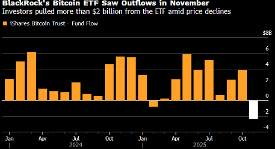随着这一需求支柱消失,ETF资金流现在成为唯一的支撑锚,而它们似乎正在失去动能。贝莱德公司的IBIT上个月遭遇约23亿美元资金流出,这是今年以来第二次月度资金净流出,也是规模最大的一次。尽管流出规模仅占该基金总资产的3%,但考虑到比特币在此前数次大幅回调后都能强劲反弹,这一回撤引发担忧:部分拥护者的长期持有策略可能正在动摇。