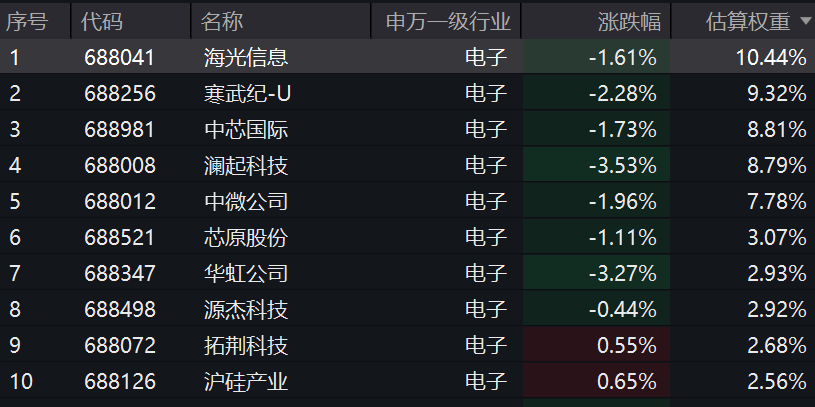 【科创芯片50ETF(588750)标的指数前十大成分股】