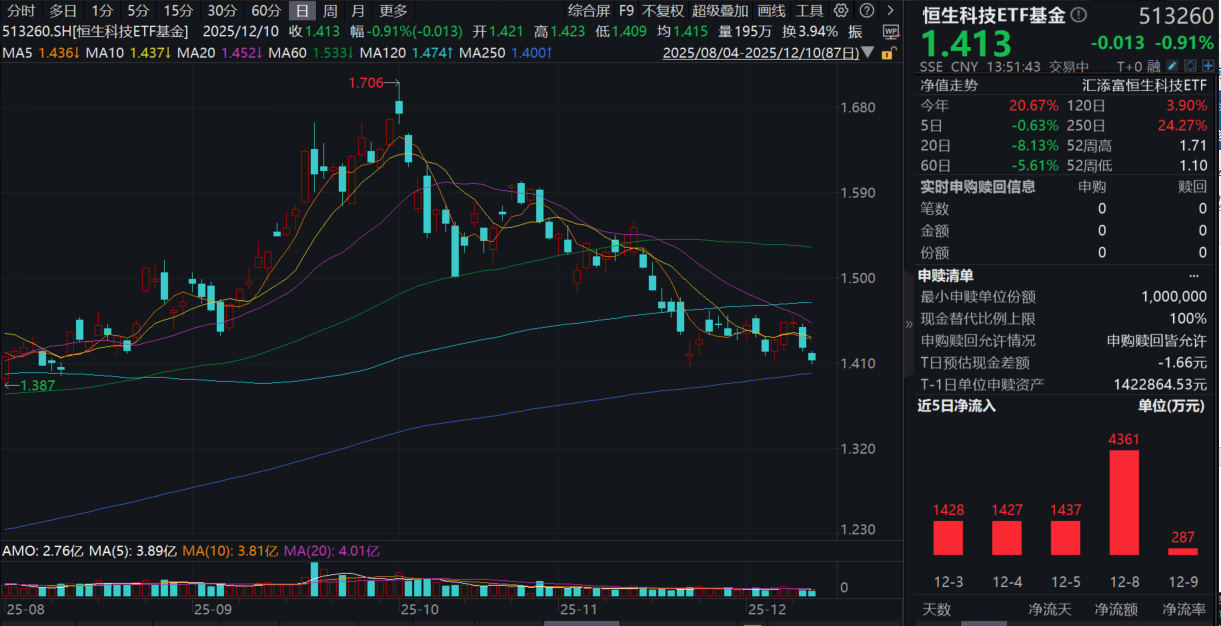 数据显示,为响应投资者投资需求,自12月9日起,恒生科技ETF基金(513260)单日净申购上限已上调至3000万份!
