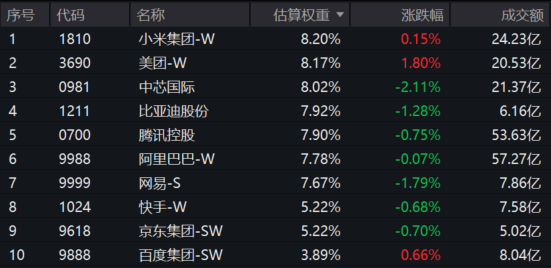 注:以上为恒生科技指数成分股,仅做展示,不作为个股推介