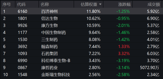 港股通创新药ETF(159570)标的指数权重股多数飘绿:科伦博泰生物-B、康哲药业跌超3%,康方生物跌超2%,百济神州、中国生物制药、三生制药跌超1%,信达生物微跌;上涨方面,石药集团涨超3%,翰森制药涨超1%。