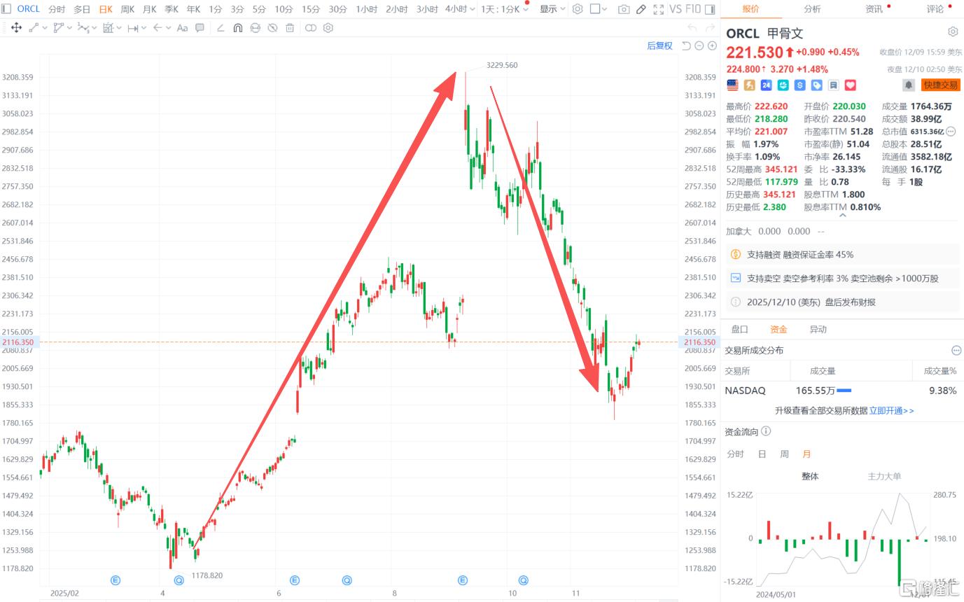 直至11月下旬,其股价才小幅回升。但即便经历了跌宕起伏,甲骨文年内仍上涨逾30%。