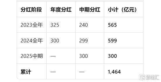 全年数据来看,2023 全年约565 亿元,2024 全年约599 亿元,再加上2025 中期的300 亿元。