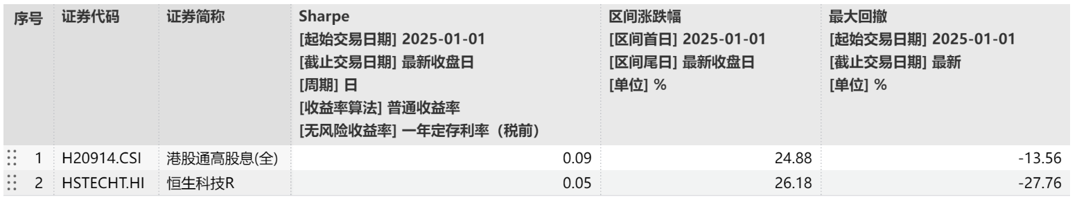 相比科技资产:港股红利夏普比例更高,投资体验或更佳!