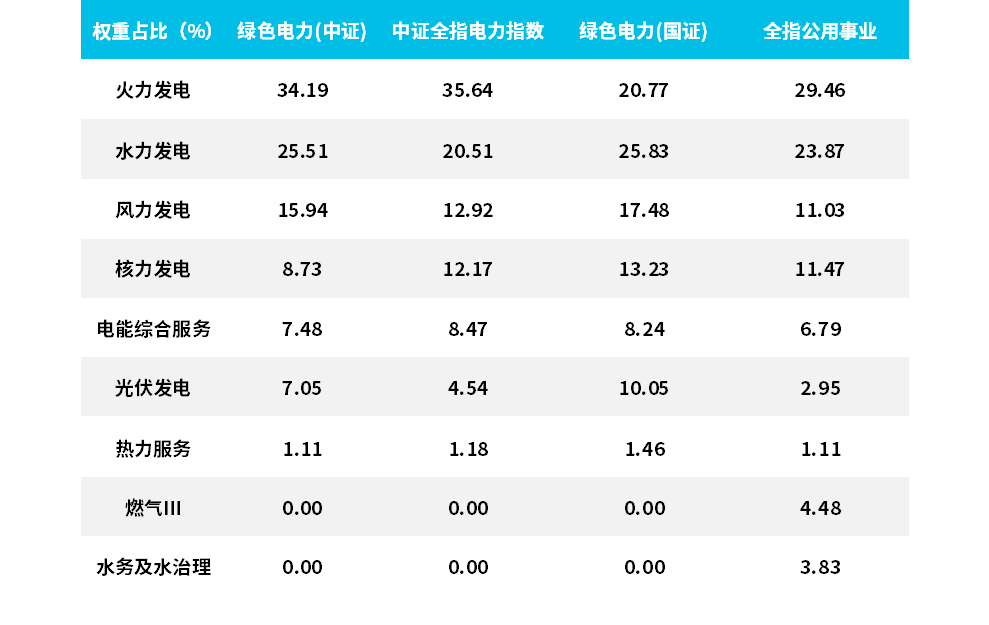 与电改进程相对应地,中证绿色电力指数吸纳了新型电力系统建设的核心受益标的,汇集了发电侧的清洁能源龙头企业,不含纯火电公司,但包含火电转型新能源公司,不含纯核电公司,但包含核电同时转型风光类公司,同时,对于绿电业务占比高的企业分配更高的权重,与产业先进生产力发展方向趋于一致。