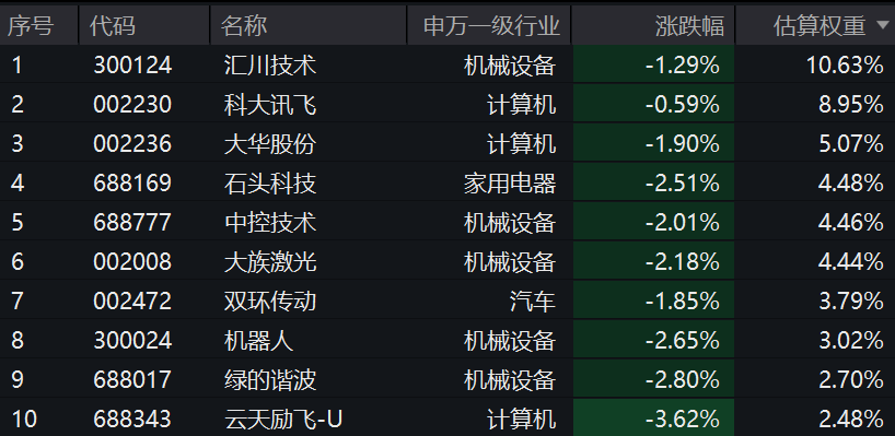 【机器人ETF基金(159213)标的指数前十大成分股】