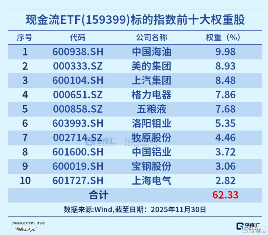 而同时,受益于政策鼓励分红和央企市值管理的政策导向,该指数12个月的股息率为3.8%,相比十年国债收益率仍有2个百分点的利差,更难能可贵的是,自2025年2月成立以来,现金流ETF(159399)已连续实现10次分红。
