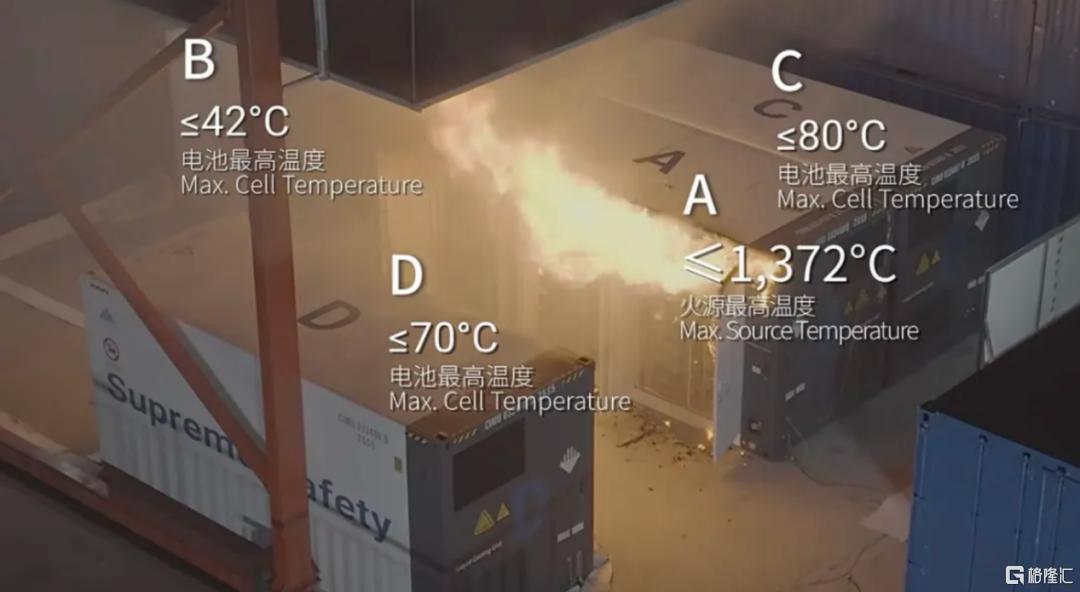 此次测试的意义,不仅在于验证产品性能,更在于推动行业标准的完善。海辰在“开门燃烧 15cm极限间距 主动消防关闭 100% SOC满电状态”等众多极限条件展开测试,验证了储能系统具备在极端场景下的安全防护能力,为全球储能行业安全提出了新标杆。