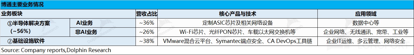 博通此前的业绩增长主要来自于 AI 业务和 VMware 的收购并表,因而 AI 业务中的定制 ASIC 芯片和 VMware 的定价调整策略,是市场的最主要关注点。具体业务来看: