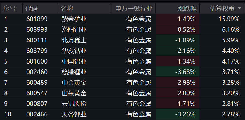 风险提示:基金有风险,投资需谨慎。投资人应当阅读《基金合同》《招募说明书》《产品资料概要》等法律文件,了解基金的风险收益特征,特别是特有风险,并根据自身投资目的、投资经验、资产状况等判断是否和自身风险承受能力相适应。基金管理人承诺以诚实信用、谨慎尽责的原则管理和运用基金资产,但不保证基金一定盈利或本金不受损失。以上基金属于中等风险等级(R3)产品,适合经客户风险承受等级测评后结果为平衡型(C3)及以上的投资者。请投资者关注指数化投资的风险以及集中投资于细分有色指数成分股的持有风险,请关注部分指数成分股权重较大、集中度较高的风险,请关注指数化投资的风险、ETF运作风险、投资特定品种的特有风险等。文中提及个股仅为指数成份股客观展示列举,本文出现信息只作为参考,投资人须对任何自主决定的投资行为负责。本文中的任何观点、分析及预测不构成对阅读者任何形式的投资建议。
