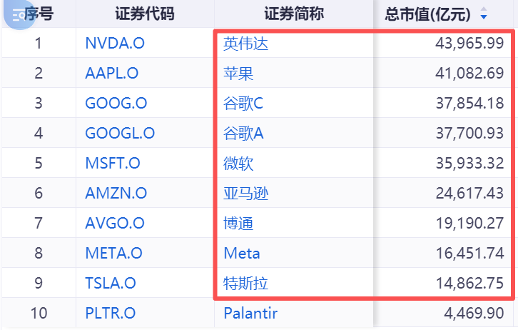 当前“纳斯达克七巨头”市值情况