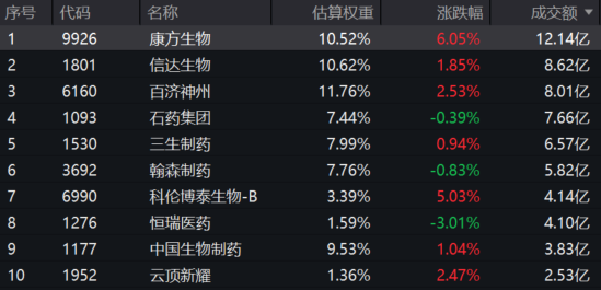 港股通创新药ETF(159570)标的指数权重股多数收红:康方生物涨超6%,科伦博泰生物-B涨超5%,百济神州、云顶新耀涨超2%,信达生物涨超1%,三生制药涨近1%。