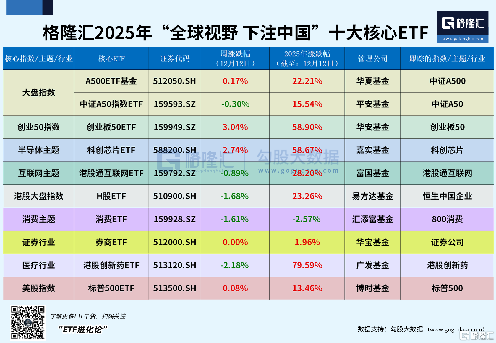 格隆汇2025年“全球视野,下注中国”十大核心ETF最新表现出炉,组合本周涨跌参半,本周微跌0.06%,年内涨幅仍录得29.92%,大幅跑赢沪深300指数(16.42%)13.5个百分点。