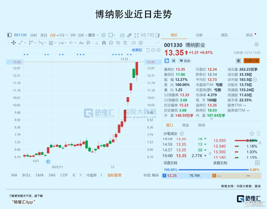 在市场对于海外大片的期待之下,近日,A股影视板块也相当活跃,其中博纳影业的股价更是走出了5天4板,半月翻倍的疯涨态势。