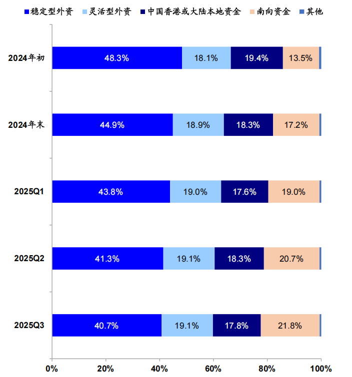 数据来源:海通国际《Q3港股定价权新变:南向VS外资》,2025/10/13