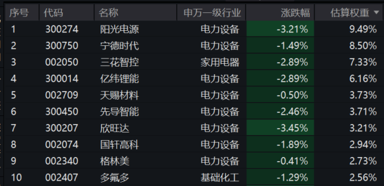 电池50ETF(159796)标的指数成分股多数回调,阳光电源、欣旺达跌超3%,三花智控、亿纬锂能等跌超2%,宁德时代、国轩高科等跌超1%,天赐材料、格林美等回调。