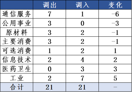 本次2025年12月15日生效的调整中,拟调出的股票主要集中于通信服务、可选消费、信息技术板块,拟调入的股票则主要来自工业、原材料、公用事业和医药领域,涉及20只样本股,是“行业均衡选样方法”的又一次体现与延续。