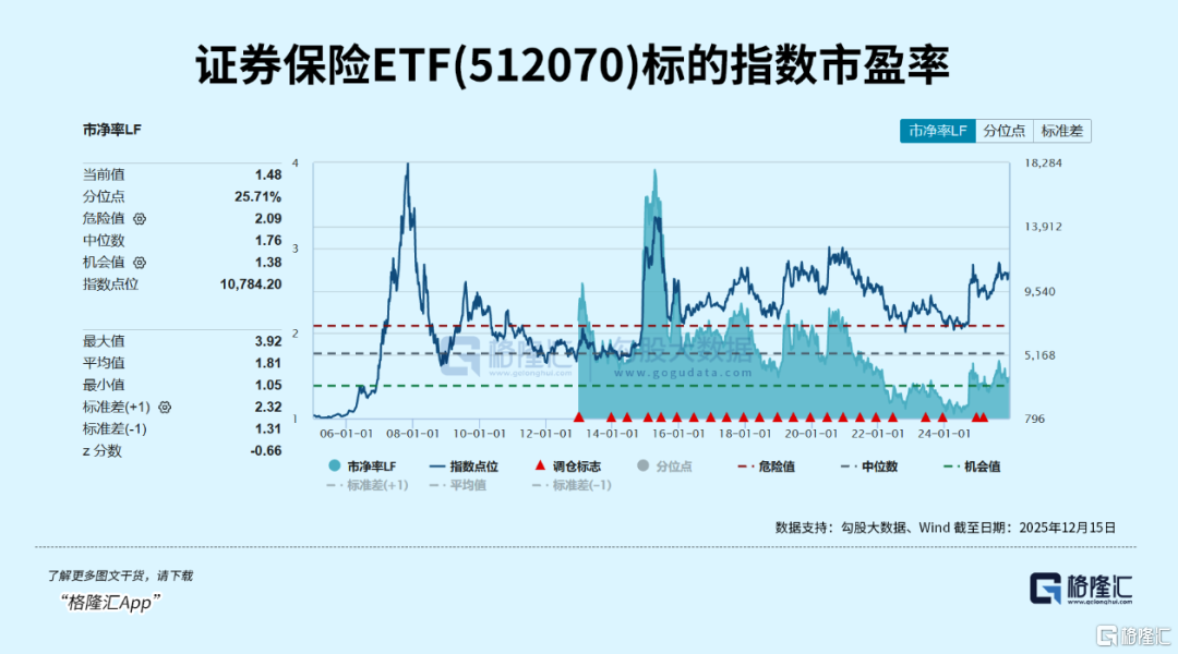 其中,证券保险ETF(512070)及联接基金(A/C:000950/007882)标的指数当前市净率为1.48倍,对应上市以来历史分位数25.71%;最新股息率2.11%,估值吸引力更为明显。