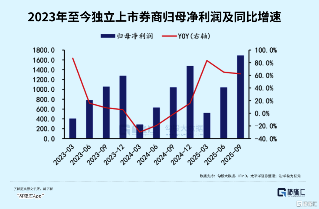 2025年前三季度,A股42家独立上市券商营业收入(净额法)、归母净利润合计分别达4164.81、1690.49亿元,同比分别显著增长了44.12%、62.38%。