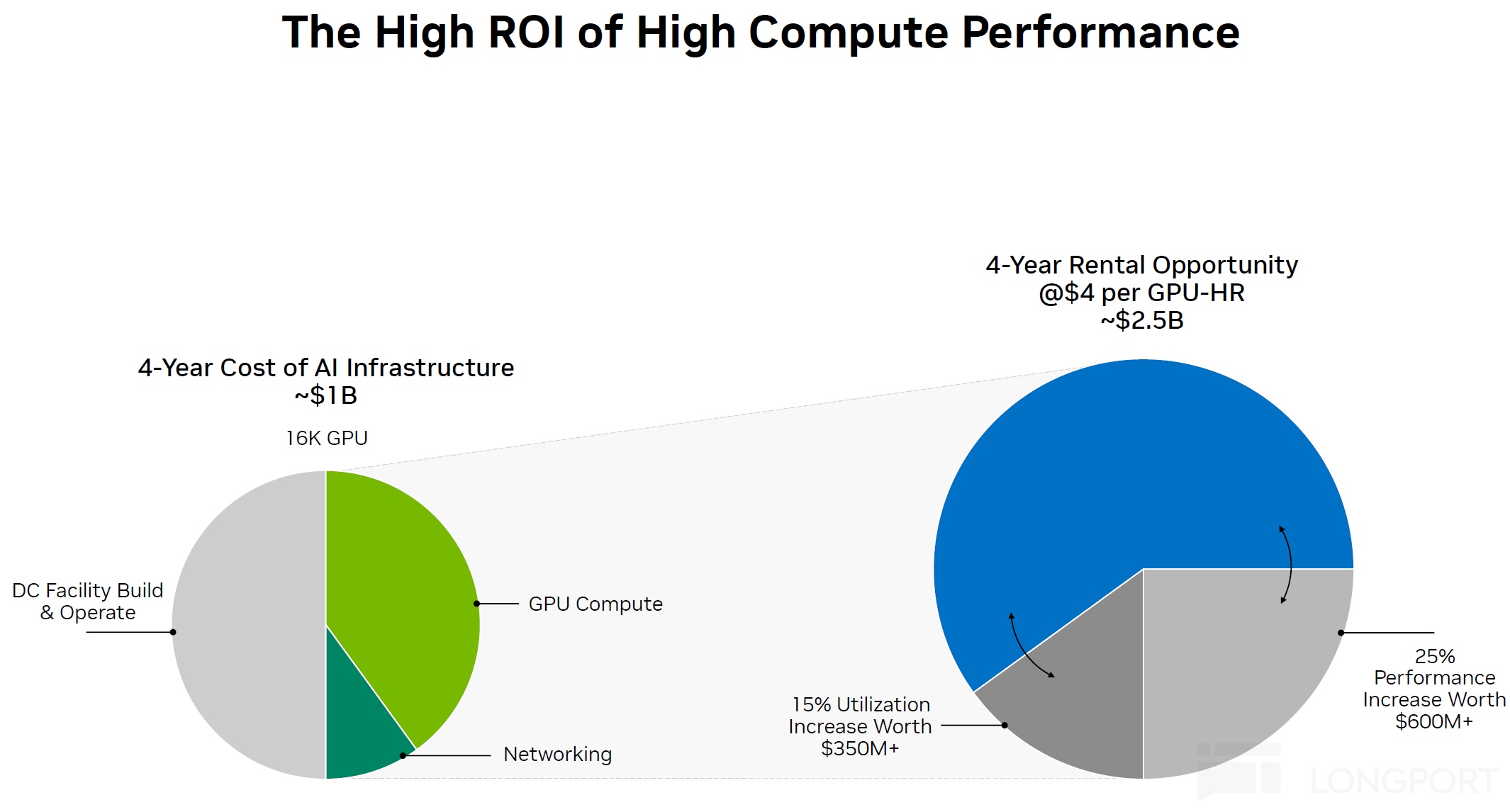 b. 按目前云计算 50% 毛利率水平,数据中心 2 美元的投入,需要云服务商创造 4 美元的收入,ROI 才能覆盖上;