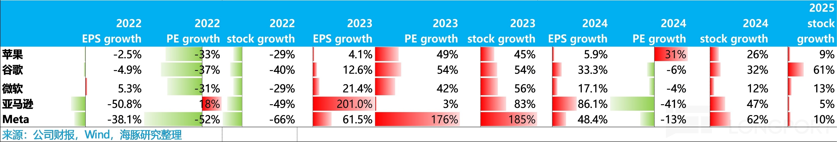 而回溯过往,当 2022 年美股巨头们收入增长放缓的同时,利润率转而又下滑,导致 EPS 呈现双重压力时,巨头普遍会经历惨烈的杀估值行情。