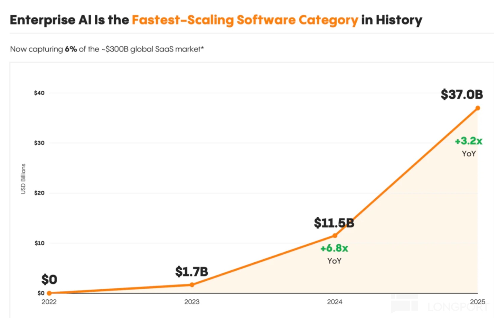 按目前的增长斜率,2026 年按同比 150-200% 的增长来算,整体 to B 方向(含基础模型 AI SaaS)26 年应该能达到 1000 亿美金,因基数小,增长看起来更加速度。