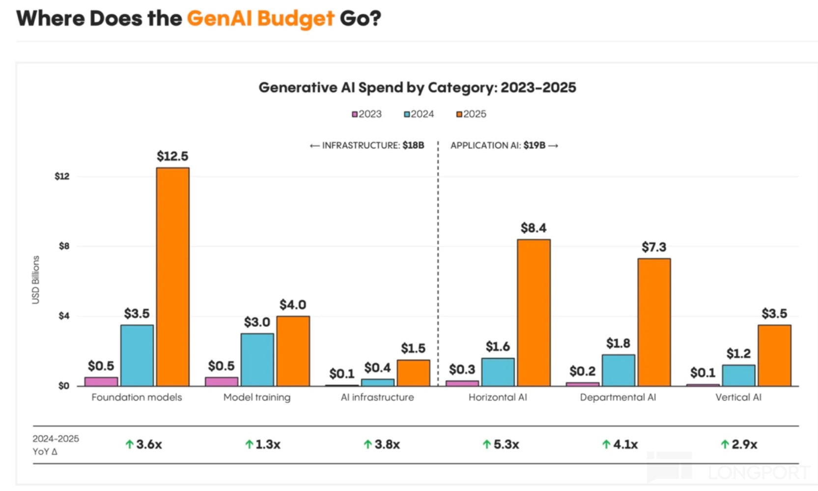注:Horizontal 为通用办公 AI,类似 ERP、Office 等;垂类行业指医疗健康等特定行业;部门 AI 指企业销售、财务等特定智能部门