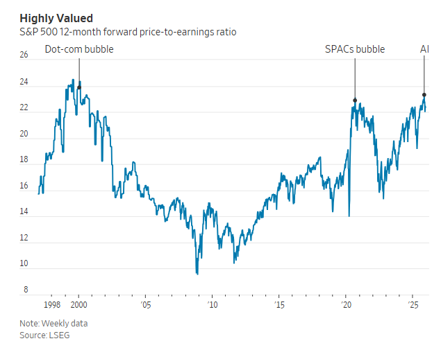 背后原因如出一辙:就像1999到2000年一样,投资者押注一项新技术将带来远超常规的利润增长。如果真的兑现,这些高估值就可以成立。