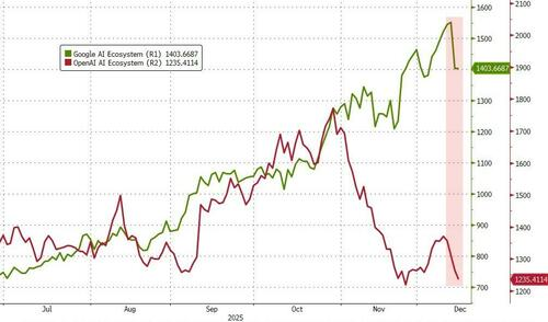 随着博通股价三日大跌超17%,AI产业链两条核心主线——“谷歌链”与“OpenAI链”同步遭受重创。