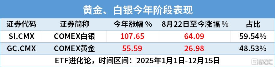 截至12月15日,COMEX白银、COMEX黄金有60%和49%的涨幅都是今年8月22日降息后期重启以来贡献的。(注:8月22日,美联储主席鲍威尔在杰克逊霍尔会议释放了可能调整货币政策的信号)