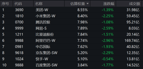 注:以上为恒生科技指数成分股,仅做展示,不作为个股推介。