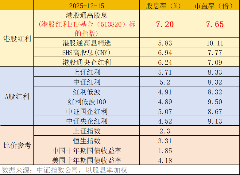 100%纯粹高股息,港股红利“权威经典之选”。港股红利ETF基金(513820)标的指数采用“100%纯粹”高股息选股策略,“大道至简”,纯粹高股息策略往往能“穿越周期”,应对复杂多变的市场风格。截至12月15日,港股红利ETF基金(513820)标的指数股息率达7.2%,领先A股、港股同类指数,成为全市场港股红利名副其实的权威“金标准”。