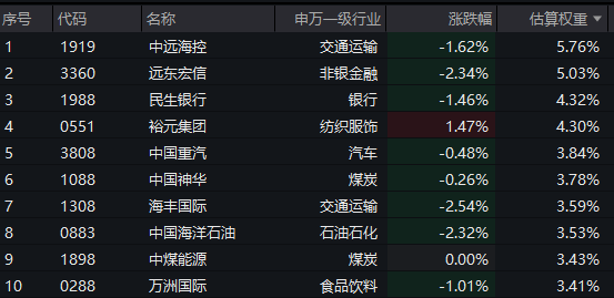 【港股通高股息指数成分股估算权重】
