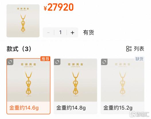 在最近一次提价之后,老铺黄金产品中,一件重达14.6g的足金项链,售价已然达到27920元,每克平均克价已经接近2000元。