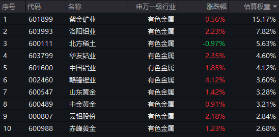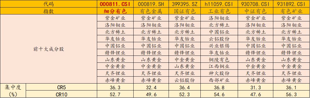 风险提示:基金有风险,投资需谨慎。投资人应当阅读《基金合同》《招募说明书》《产品资料概要》等法律文件,了解基金的风险收益特征,特别是特有风险,并根据自身投资目的、投资经验、资产状况等判断是否和自身风险承受能力相适应。基金管理人承诺以诚实信用、谨慎尽责的原则管理和运用基金资产,但不保证基金一定盈利或本金不受损失。以上基金属于中等风险等级(R3)产品,适合经客户风险承受等级测评后结果为平衡型(C3)及以上的投资者。请投资者关注指数化投资的风险以及集中投资于细分有色指数成分股的持有风险,请关注部分指数成分股权重较大、集中度较高的风险,请关注指数化投资的风险、ETF运作风险、投资特定品种的特有风险等。文中提及个股仅为指数成份股客观展示列举,本文出现信息只作为参考,投资人须对任何自主决定的投资行为负责。本文中的任何观点、分析及预测不构成对阅读者任何形式的投资建议。