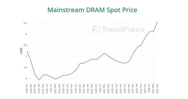 话虽如此,传统DRAM的当前市场状况非常有利,供应无法满足激增的需求,其中大部分也与AI相关。很大一部分DRAM产能已被重新分配到HBM生产,且AI数据中心也消耗大量的标准DRAM。这就是为什么我们看到DRAM现货价格处于历史高位。