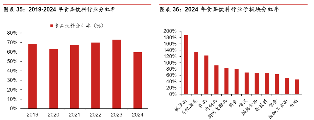 趋势三:估值与持仓双底共振,高分红属性凸显配置价值。资金面方面,2025Q3食品饮料基金重仓占比下滑至6.4%(环比-1.7pct),白酒重仓占比5.5%(环比-1.3pct),连续四季度下滑,大众品重仓占比0.9%(环比-0.4pct)。板块高分红属性突出,2024年在31个行业中排名第10位,多子板块估值处于历史低位,估值与持仓双底共振。