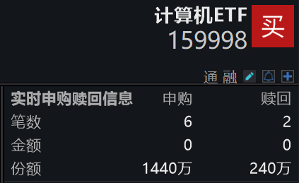 值得一提的是,计算机ETF(159998)盘中获资金净申购已达1200万份,位居同类产品第一。