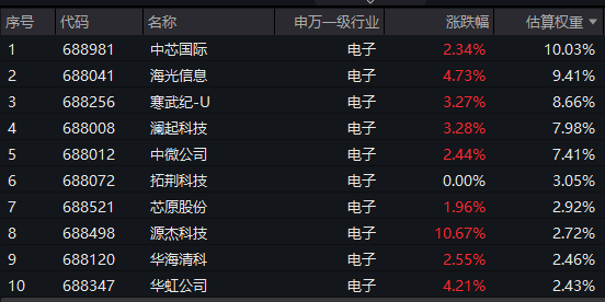 【科创芯片50ETF(588750)标的指数前十大成分股】