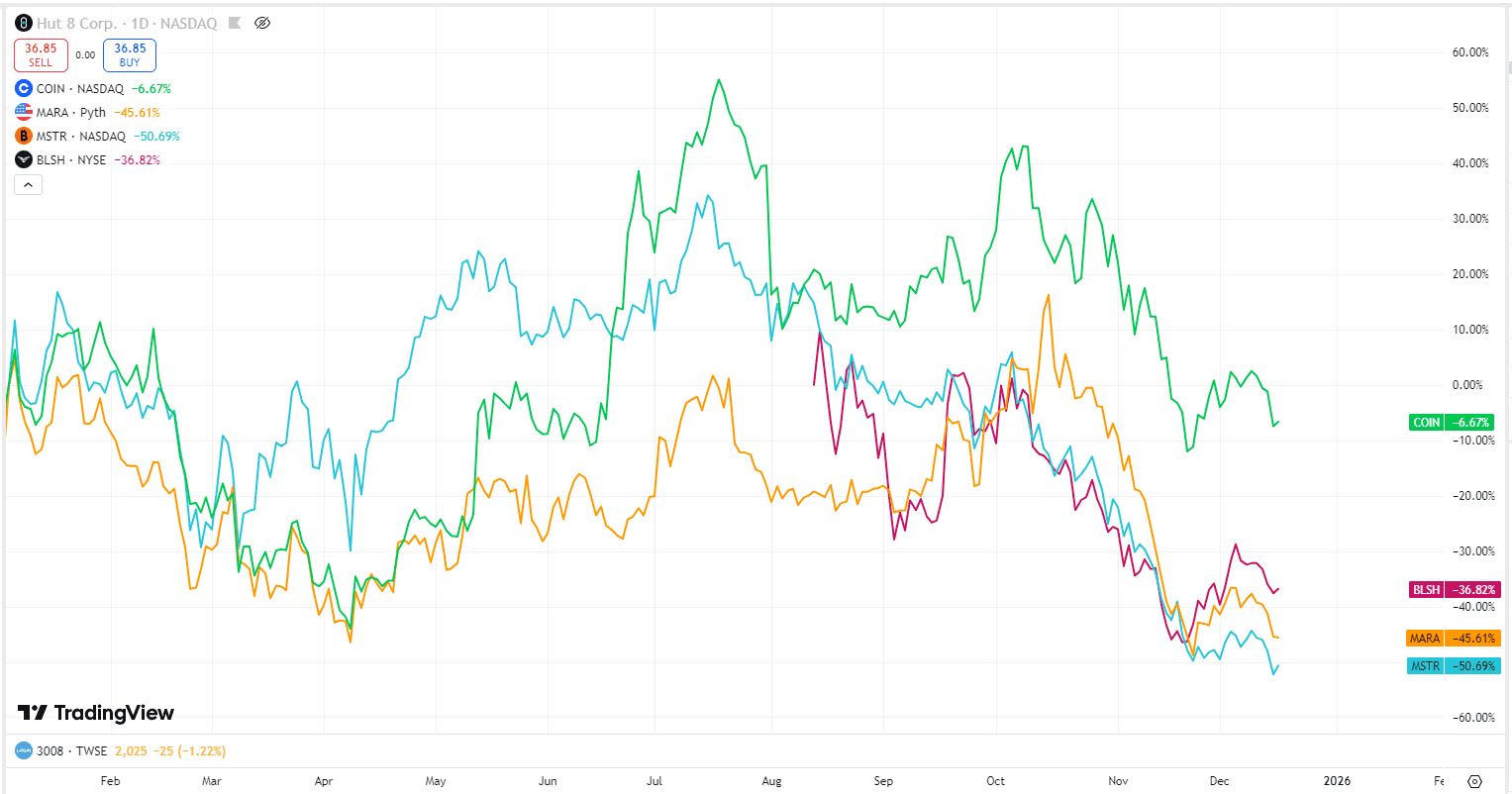 Strategy(MSTR)、Bullish(BLSH)、Tesla(TSLA)、GameStop (GME)、American Bitcoin(ABTC)、Galaxy Digital Holdings(GLXY)等等。 |