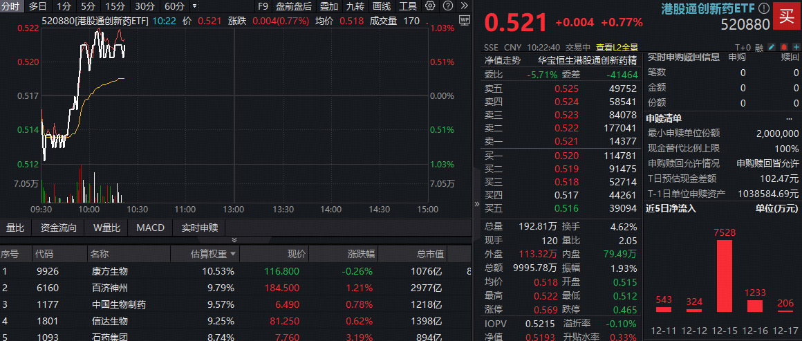港股医药今日一枝独秀,截至发稿恒指、恒科指均飘绿,创新药龙头多股上涨,百济神州涨超1%,石药集团涨超3%,创新药含量100%港股通创新药ETF(520880)盘中直线拉升翻红!