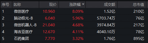 港股医疗主题板块大面积飘红,AI医疗、医械相关概念股领涨,微创医疗涨8%,脑动极光-B、微创机器人-B分别涨超5%、4%,港股通医疗主题指数盘中涨近1%。ETF方面,跟踪该指数的港股通医疗ETF华宝(159137)正在发售中