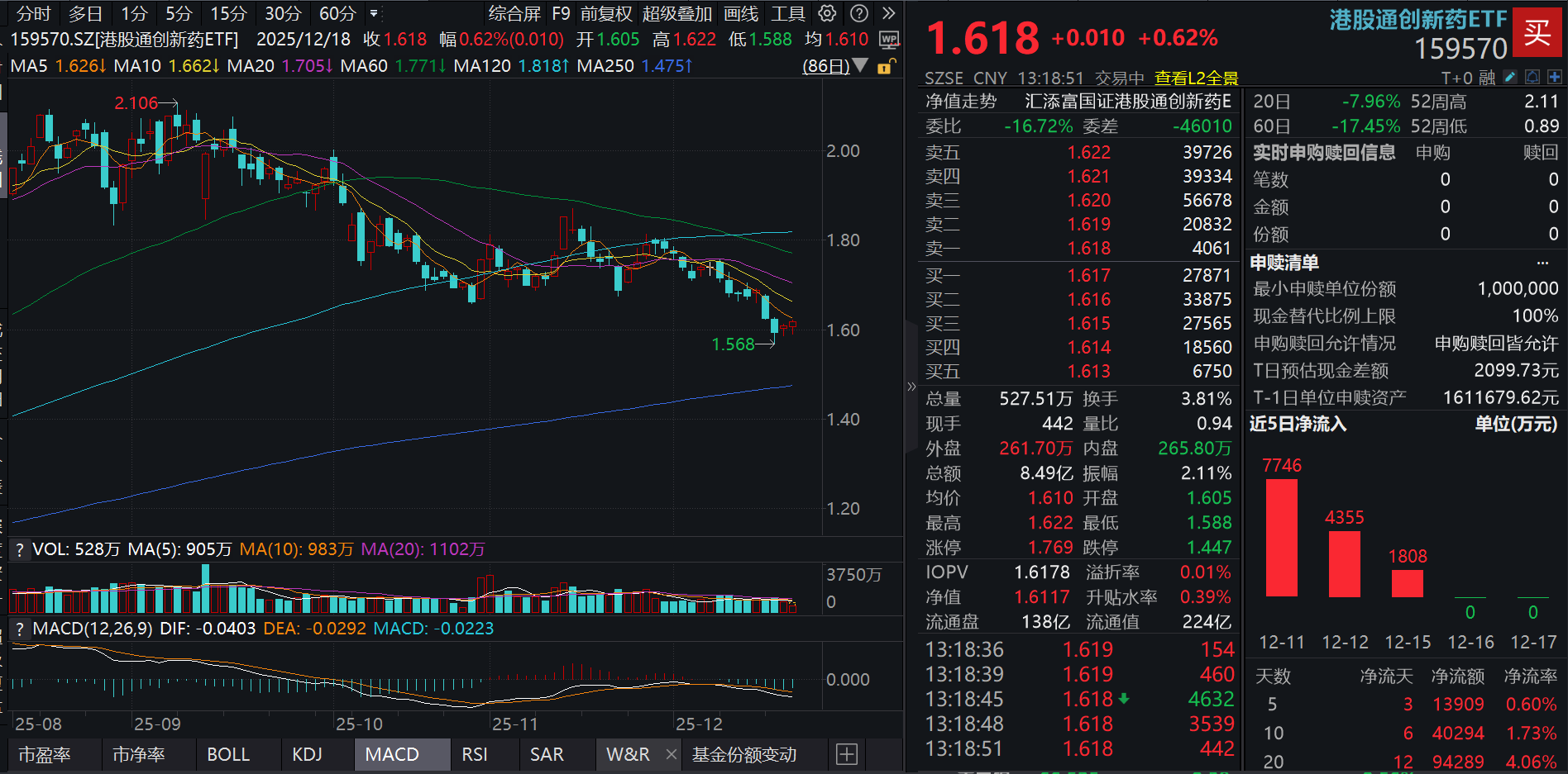 今日(12.18),港药连续第二日反弹,创新药纯度100%的港股通创新药ETF(159570)涨0.62%,盘中成交额超8.5亿元!资金面上,近20日累计净流入超9.4亿元!截至12月17日,港股通创新药ETF(159570)最新规模超222亿元,同类持续领先!