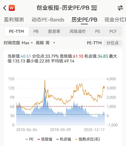 该指数最新PE(TTM)为40.51倍,位于上市以来33.79%历史分位,处在相对低估区域,配置性价比突出。