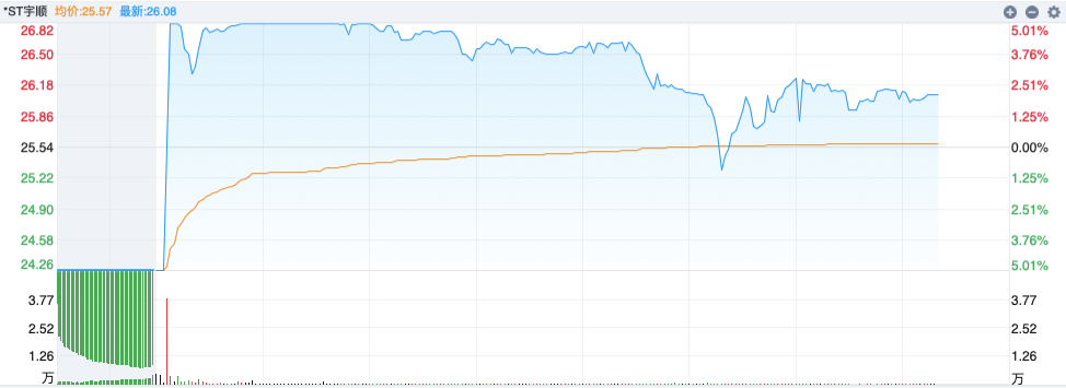 例如,12月18日,*ST宇顺盘中涨停,上演“地天板”,不过随后打开涨停板。截至收盘,该公司股价报25.91元/股,涨幅为1.45%,总市值为72.61亿元。