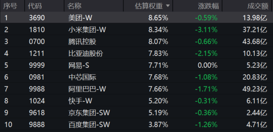 注:以上为恒生科技指数成分股,仅做展示,不作为个股推介。